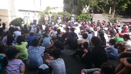 バスに荷物を積み込んで、閉園式を行いました。宿の方々にきちんと感謝の気持ちを伝えました。