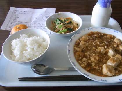 ごはん・牛乳・四川豆腐・ナムル・ミカン