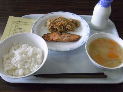 今日は、和食でした。給食献立メモには、和食の時のごはんの配置について書いてありました。ごはんは左、汁ものは右、おかずは奥。当たり前ですが、改めて家できちんとやっているかなあと、自分の食卓を思い出しました。それにしても、切干大根の煮つけは、給食か旅館の朝ごはんでしか食べられないなあと、おいしくいただきました。