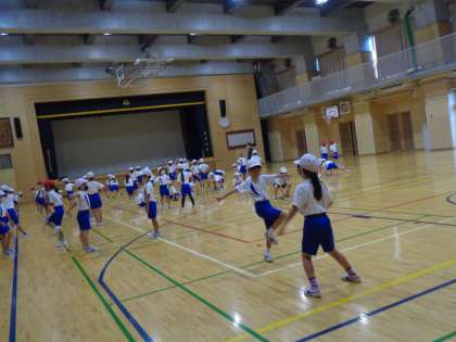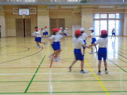 2年生「多様な動きをつくる運動遊び」の様子です。めあては「友達といっしょに体を動かそう」です。「手つなぎおに」や「まねっこ」などで、友達とダイナミックに体を動かし、運動の心地よさや友達を合わせる楽しさを味わいました。どの子も笑顔いっぱいでとても楽しそうでした。