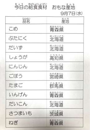 9月7日 今日の給食