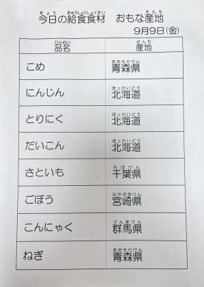 9/9 今日の給食