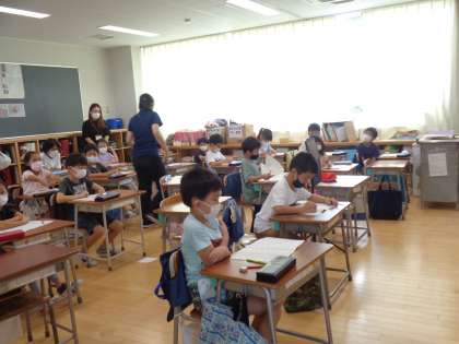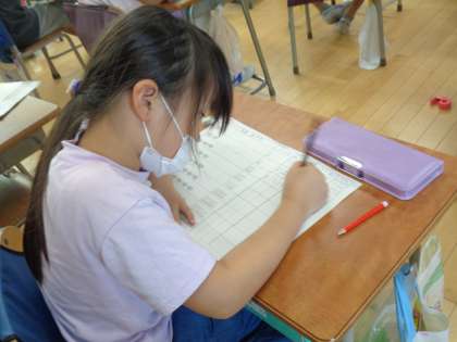 今日からかけ算九九の学習の入りました。「5の段」をワークシートに書いていました。これから少しずつ覚えていきます。
