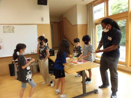 本日と明日、4年生は英語体験教室を多目的室で