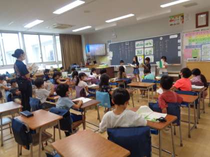 物語「やくそく」の音読発表をしていました。グループで練習してから、発表タイムです。しっかりと声を出して、すてきな発表でした。練習の成果が出ていました。