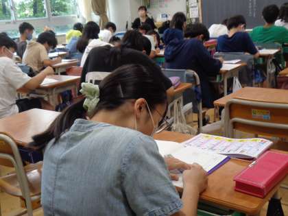 漢字の学習をしていました。教室は静まり返り、黙々と取り組んでいました。この集中力はさすが6年生です。