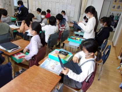 タブレットでビフォー・アフターの写真を撮り、さらに実践してみた振り返りをしっかりと記録します。