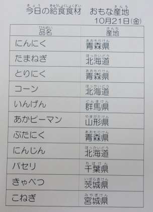 10/21 今日の給食