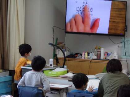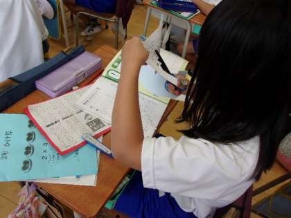 かけ算の学習を始めたばかりの子供たちは、九九を唱えたり問題の答え合わせをする際には不安な様子が見られましたが、今では自信をもって取り組んでいます。