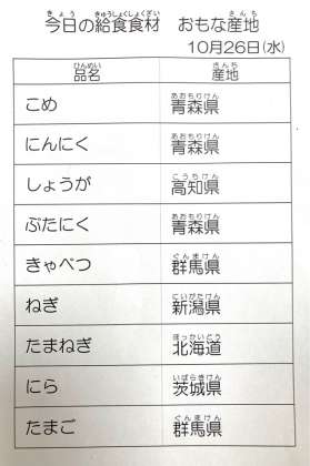 お店の回鍋肉は、甜麺醤を使っているのが多いと思いますが、今日の給食は特製の味噌だれです。味噌だれが美味しくて、ダレもが微笑ミソうになります。