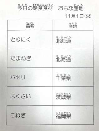 11月1日 今日の給食