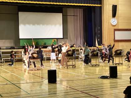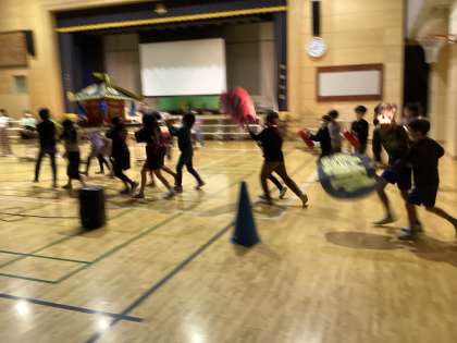 体育館では、3年生が練習をしていました。みんなの太鼓の音をピッタリ合わせることを何度も練習していました。照明係も子供たちが行います。最後まで全力で取り組む子供たちの真剣さが伝わってきました。