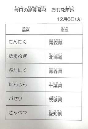 12月6日 今日の給食