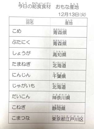 12月13日 今日の給食