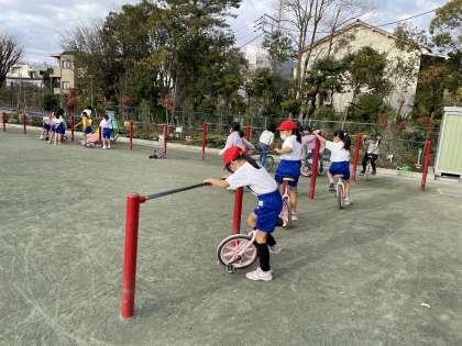 一輪車を一生懸命練習している子もいました。乗れるようになるまでは、時間がかかりますが、あきらめず練習すれば、絶対に乗れるようになります。頑張ってほしいです。