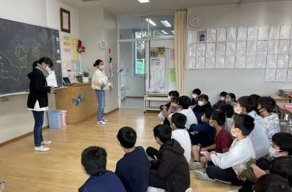 このクラスでは、係活動の発表をしていました。発表が終わるとみんなで拍手をしてすてきでした。
