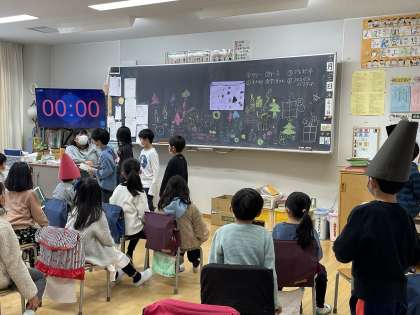 学期末は、どのクラスでも「お楽しみ会」が行われています。写真は、すべて違うクラスですが、子供たちが主体となって行われていることが分かります。先生は、微笑みながら見守っているだけ・・・子供たちの生き生きとした姿がとってもすてきでした。