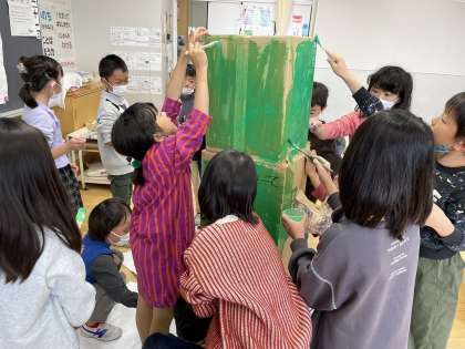 この学級では、クリスマスツリーを作ったり、椅子取りゲームをしたり、みんなで楽しんでいました。