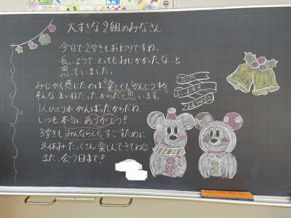 黒板に担任の先生からの温かいメッセージが書かれているクラスもありました。