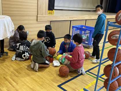 運動委員さんは、体育館の用具を整えてくれていました。ボールに空気を入れたり、ゼッケンをきれいにたたんだりと、みんなが進んで活動していました。