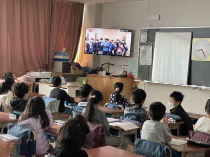 教室では、テレビ画面を見て、頑張った人達に温かい拍手を送っていました。