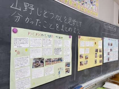 いよいよ、23日は、学年全体が7か所のグループに分かれて調べにいきます。学校公開では、グループごとの準備の様子を参観していただく予定です。2年生は、山野児童館で見学したり、まとめたりしたことを活かしてステップアップしていきます。