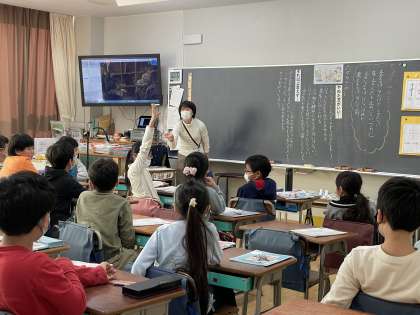 発表している友達に体を向けて聞く様子が見られました。友達の考えを大切にしている学級の雰囲気がすてきでした。
