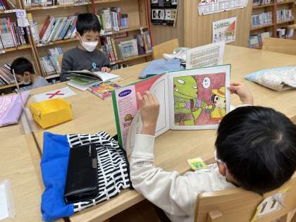 本の貸し借りにもすっかり慣れて、とてもスムーズでした。借り終わったら、静かに本を読んでいる姿もすてきでした。