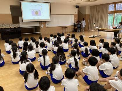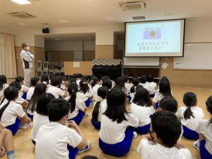 計測の前に養護先生が「魔法のカメラ」を使って、日頃の生活を振り返ってみようとお話をしてくださいました。