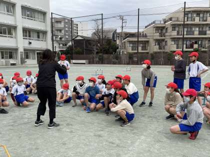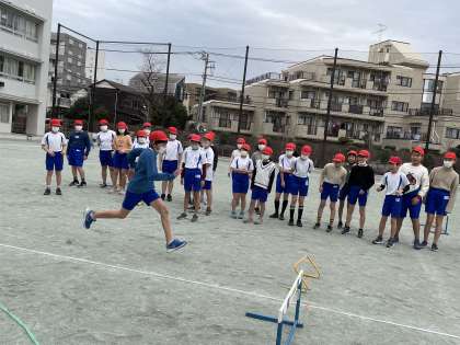 友達の跳び方を見て、速く走るポイントを考えていました。先生が「どうしてあんなに速く走れるのだろう?」と問うことで、走り方やハードルを跳びこすときの動き方に意識が向かいます。