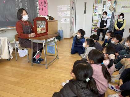 砧図書館の方が、山野小学校に来てくださいました。声色を変えて紙芝居を読んだり、「大きなかぶ」の話に合わせて組木を動かしたりと、たくさん工夫してくださって子供たちは、お話の世界に引き込まれていました。