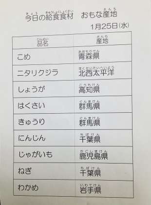 1/25 今日の給食