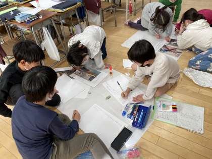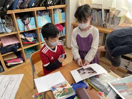 2年生は、町たんけんの発表にむけて、資料づくりをしていました。どのグループも声を掛け合って作業をしていました。ちがうクラスの友達とも協力できていて、素晴らしかったです。