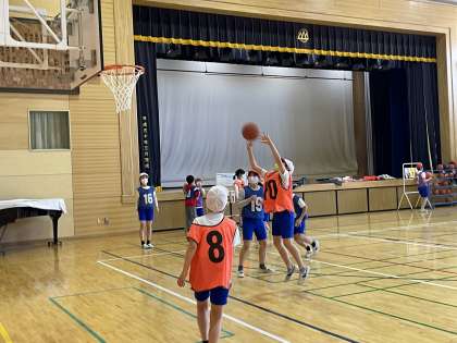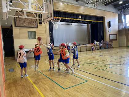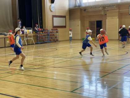 5年生がバスケットボールのゲームをしていました。