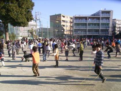 今日の集会は、運動委員会によるなわとび集会でした。第1グランドでは、高学年、第2グランドでは低学年がなわとびをしました。残念なのは、高学年の子どもたちの中に、なわとびをもってきていない子どもがたくさん見られたことです。これから、体育の授業や、体力作りでなわとびをやる機会がありますので、ぜひ持ってくるようお願いします。