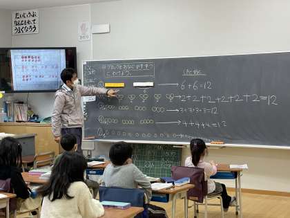 12このブロックを同じ数ずつ分けます。どんな分け方があるか図を使って考え、それを式で表していました。