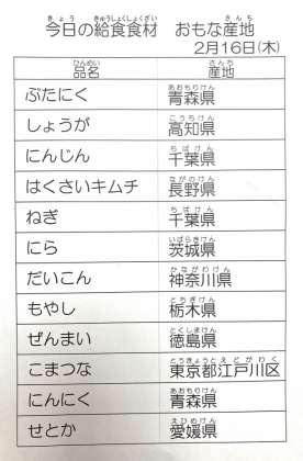 2月16日 今日の給食