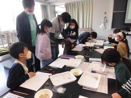 ピンセットを使いながら仲間分けをしました。図鑑を見て