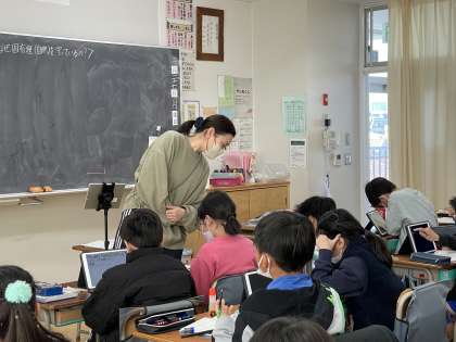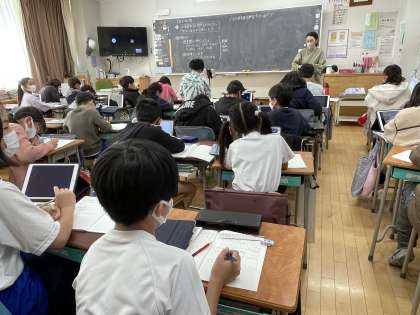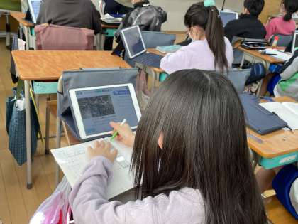 「小笠原村は自然をどのように守っているか?」という課題を資料集やタブレットを使って調べていました。自分たちの住んでいる世田谷とは、まったく違う地域のことを知るためには、さまざまな手段で情報を得て、その中から必要なことや大事なことを選び取ります。