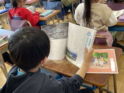 「はしれ、三陸鉄道」というお話をもとに、『東日本大震災』の復興に携わった人々の気持ちを考えながら、郷土を愛する態度を養っていく学習です。先生の経験したことや教科書のお話から、みんな真剣に考えていました。