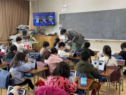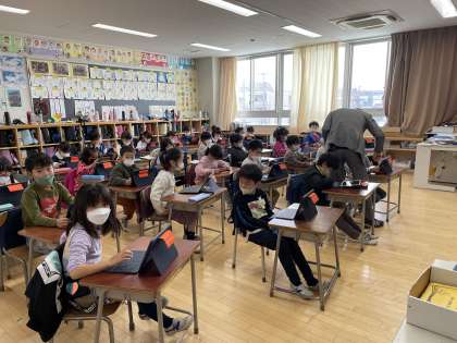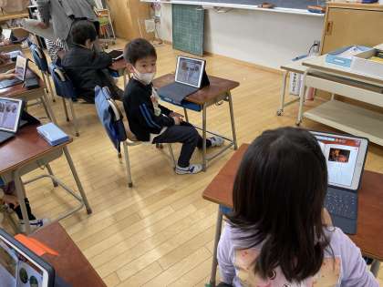 「どうぶつの赤ちゃん」の調べ学習をするために、先生からロイロノートに資料が送られました。自分が調べたい資料が送られてくるので、自分の番がくるまで待たなくてはなりません。先生の話をよく聞いて、とても静かに待つことができていました。とても立派な態度でした。