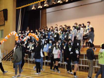 5年生は当日の会の司会進行、花のアーチで出迎えてくれました。