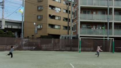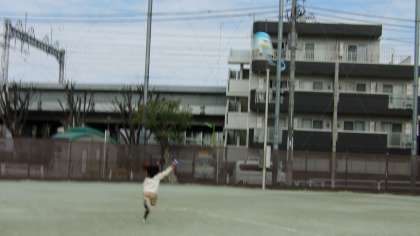 走って、風の手ごたえを感じて振り返ると、思ったより高いところに凧があり、歓声が上がりました。