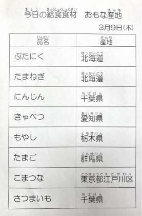 今日は、ソース焼きそば、豆腐と玉子のスープ、キャラメルポテト、牛乳です。