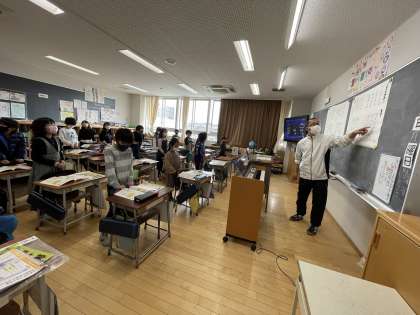 「どこかで」という歌を輪唱していました。クラスの半分のグループが旋律を少しずらして追いかけるように歌います。人の旋律につられないように上手に歌えると美しいハーモニーを感じることができます。