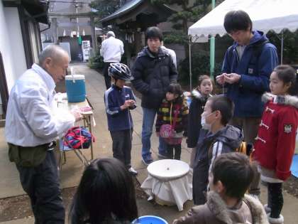 砧町町会の方々が、三峰公園の境内で昔遊びの会を開いてくださいました。山野小の子どもたちもたくさん参加していました。ベーゴマや竹馬、石けり、紙飛行機、めんこ、糸電話、あやとりに紙でっぽう、お手玉と本当に盛りだくさんです。地域の方と、子どもたちの温かい交流の場になっていました。ありがとうございます。