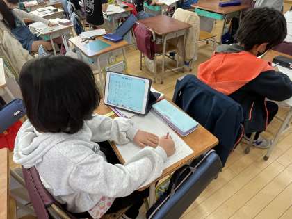 1年間をふり返って、楽しかったこと、頑張ったこと、心に残っていることを伝える学習です。発表のための原稿を書いていました。