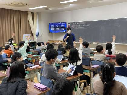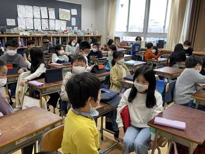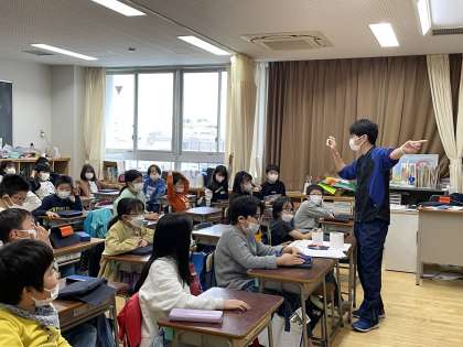 3年生が、来年度の交流遊びの体験的な活動をしていました。2年生に楽しんでもらうための遊びを考えて、実際に一緒に遊ぶのです。