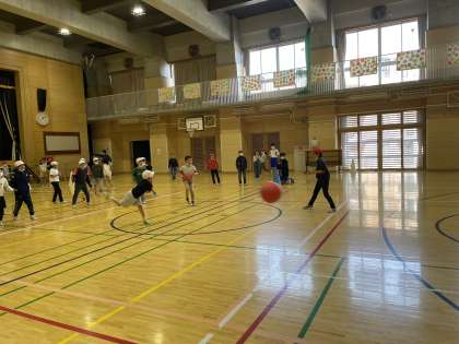 6年生が考えたお楽しみ企画 2年生へは「クラス対抗ドッジボール」でした。とても速いボールの投げ合いでした。みんなとっても楽しそうでした。