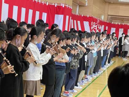 5年生が「さくら」を演奏してくれました。「さらば、友よ、旅立ちのとき。桜舞い散る道の上で・・・」素晴らしい演奏がずっと鳴り響いていました。